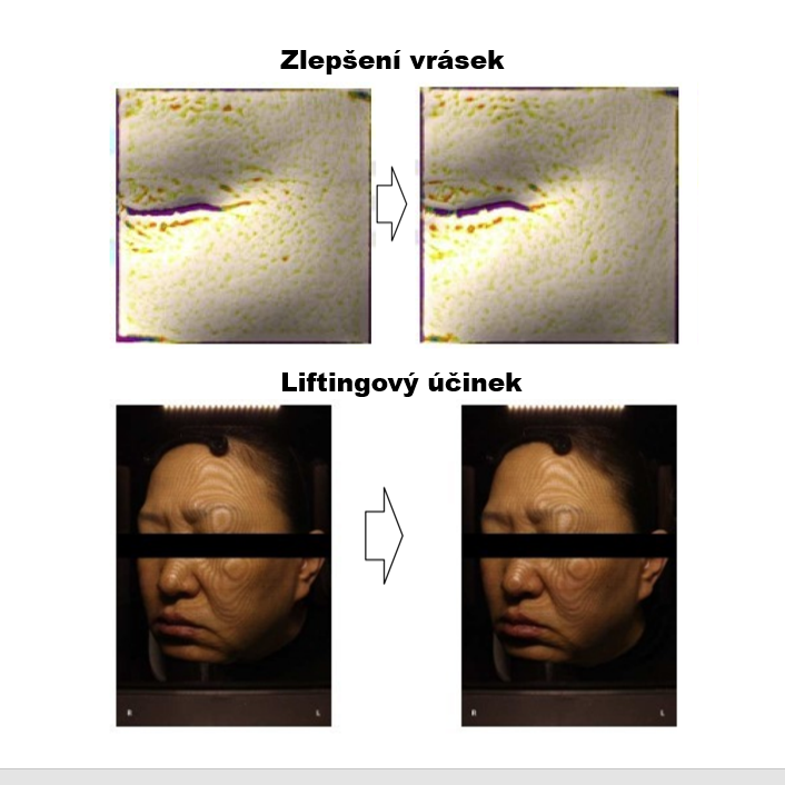 W porównaniu do okresu przed zastosowaniem produktu kąt wskazujący stopień zwiotczenia skóry zmniejszył się statystycznie istotnie o 1,30% po 2 tygodniach stosowania, co wskazuje na efekt liftingu (p<0,05)